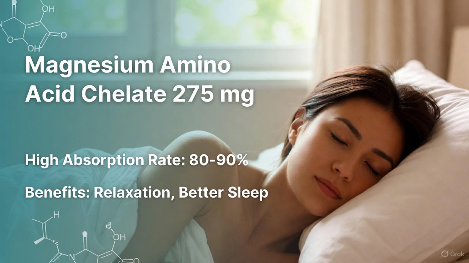 คือแมกนีเซียมที่ถูก จับ กับกรดอะมิโน (Chelated) ทำให้โครงสร้างเสถียร ร่างกายดูดซึมผ่านช่องทางเดียวกับโปรตีน (dipeptide pathway) จึงดูดซึมได้สูงถึง 80-90% ต่างจาก Magnesium Oxide ที่ดูดซึมได้แค่ 4-43% เท่านั้น!